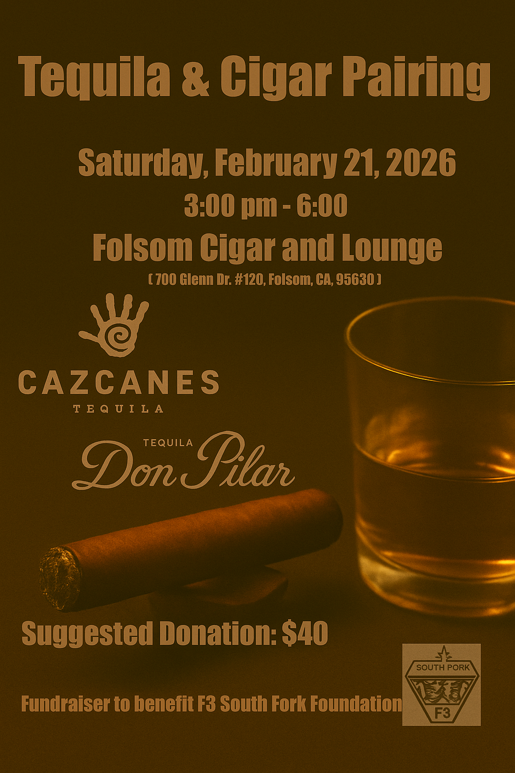 All Adults 21+ are invited to come and enjoy a Saturday of pairing fine hand rolled Cigars and Tequila Pairing. This event is sponsored by Cazcanes Tequila and Don Pilar Tequila. Proceeds of this event to benefit F3 South Fork Foundation in support of our mission.